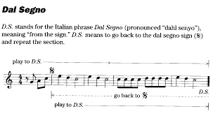 ..............4) EXPLAINED THE NEW MUSICAL ROAD SIGN "D.S." MEANING DAL SEGNO (THE SIGN IN ITALIAN)